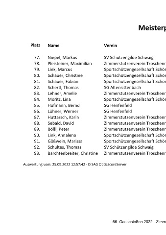 91. Gößwein, Marissa Sportschützengesellschaft Schönberg 69,4 51,2 47,9 168,5