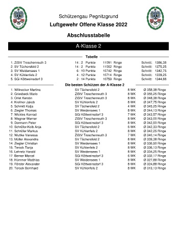 2. SV Tüchersfeld 2 14 : 2 Punkte 11002 Ringe Schnitt: 1375,25