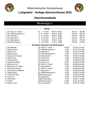 1. SG 1562 e.V. Spalt 1 16 : 4 Punkte 9279.8 Ringe Schnitt: 927,98