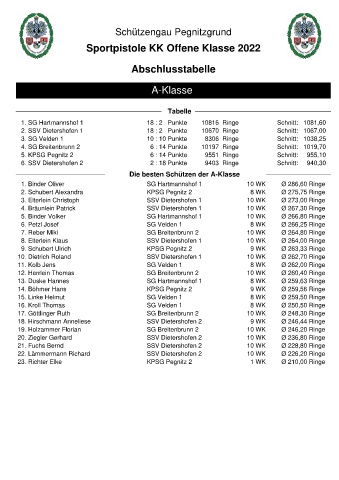 1. Binder Oliver                            SG Hartmannshof 1                  10 WK         Ø 286,60 Ringe