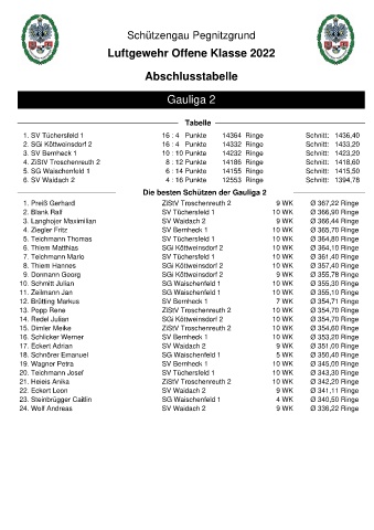 2. SGi Köttweinsdorf 2 16 : 4 Punkte 14332 Ringe Schnitt: 1433,20