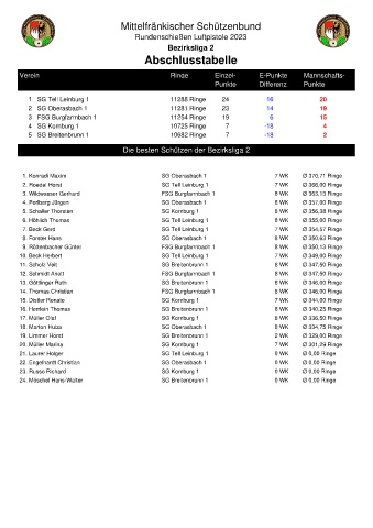 21. Laurer Holger SG Tell Leinburg 1 0 WK Ø 0,00 Ringe