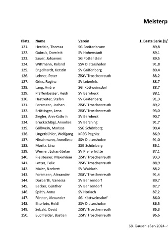 140. Pleisteiner, Maximilian ZiStV Troschenreuth 93,3 87,3 75,3 255,9 Ringe