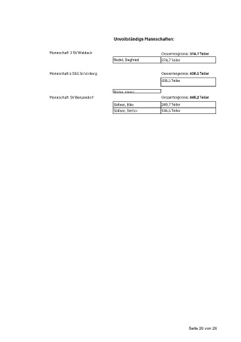 Mannschaft SV Benzendorf Gesamtergebnis: 445,2 Teiler